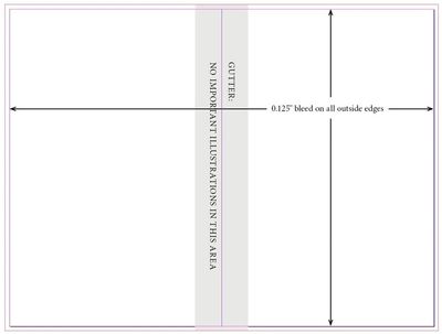 Note: The center of a 2-page spread is bound into the gutter (or spine) of the book. For that reason, it’s crucial that no important parts of an illustration are placed down the gutter, as they will disappear into the binding of the book. Usually the gutter is an area approximately 1.5″ wide down the spine (see diagram above).